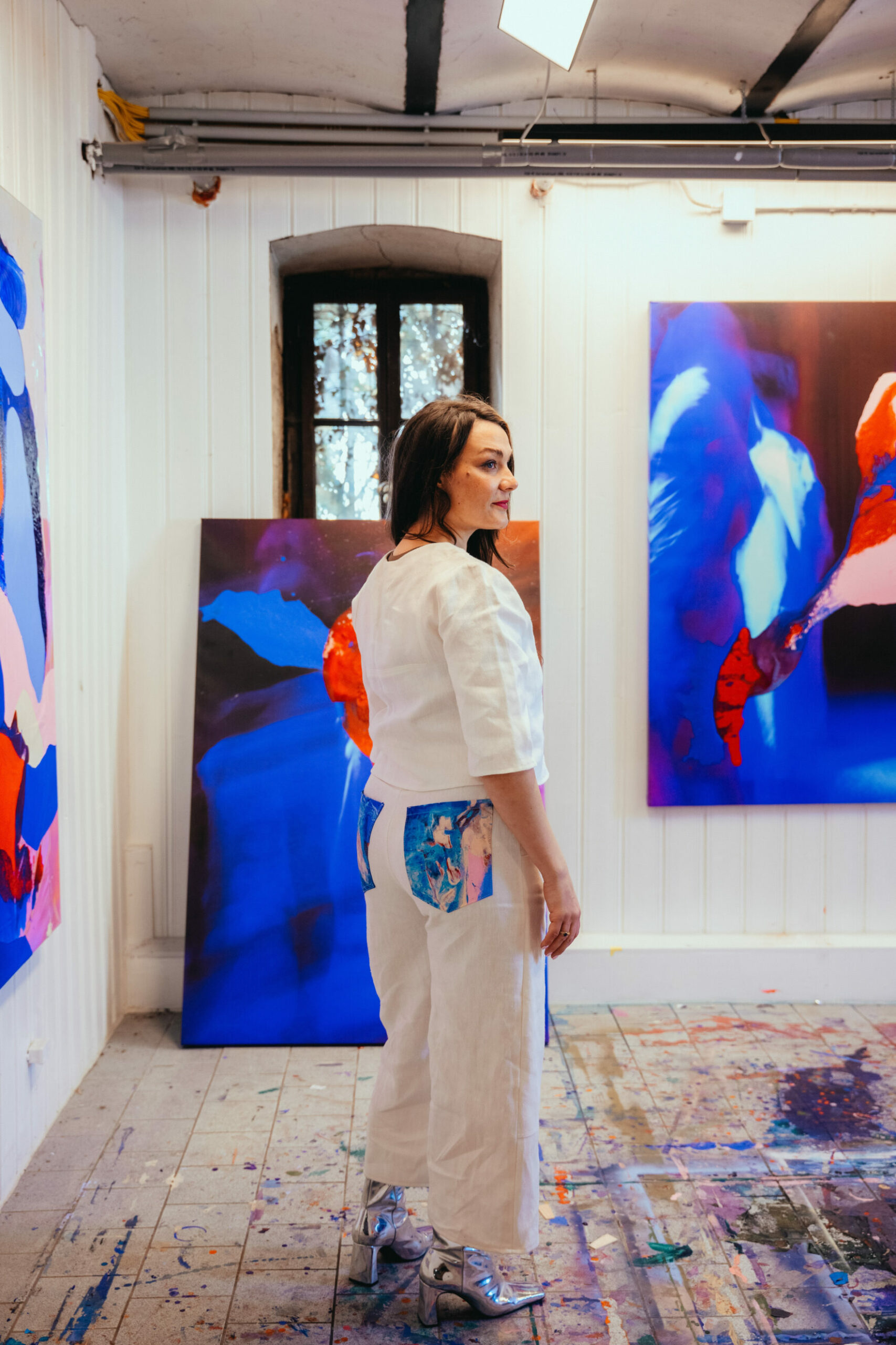 Die Jeans mit dem bemalten Patch vorne und aufgesetzten Taschen hinten ist eine Kollaboration mit der Künstlerin Stefanie Adis. Entstanden ist eine limitierte Kollektion von Unikaten, Kunst die ihr auf der Haut tragen könnt.