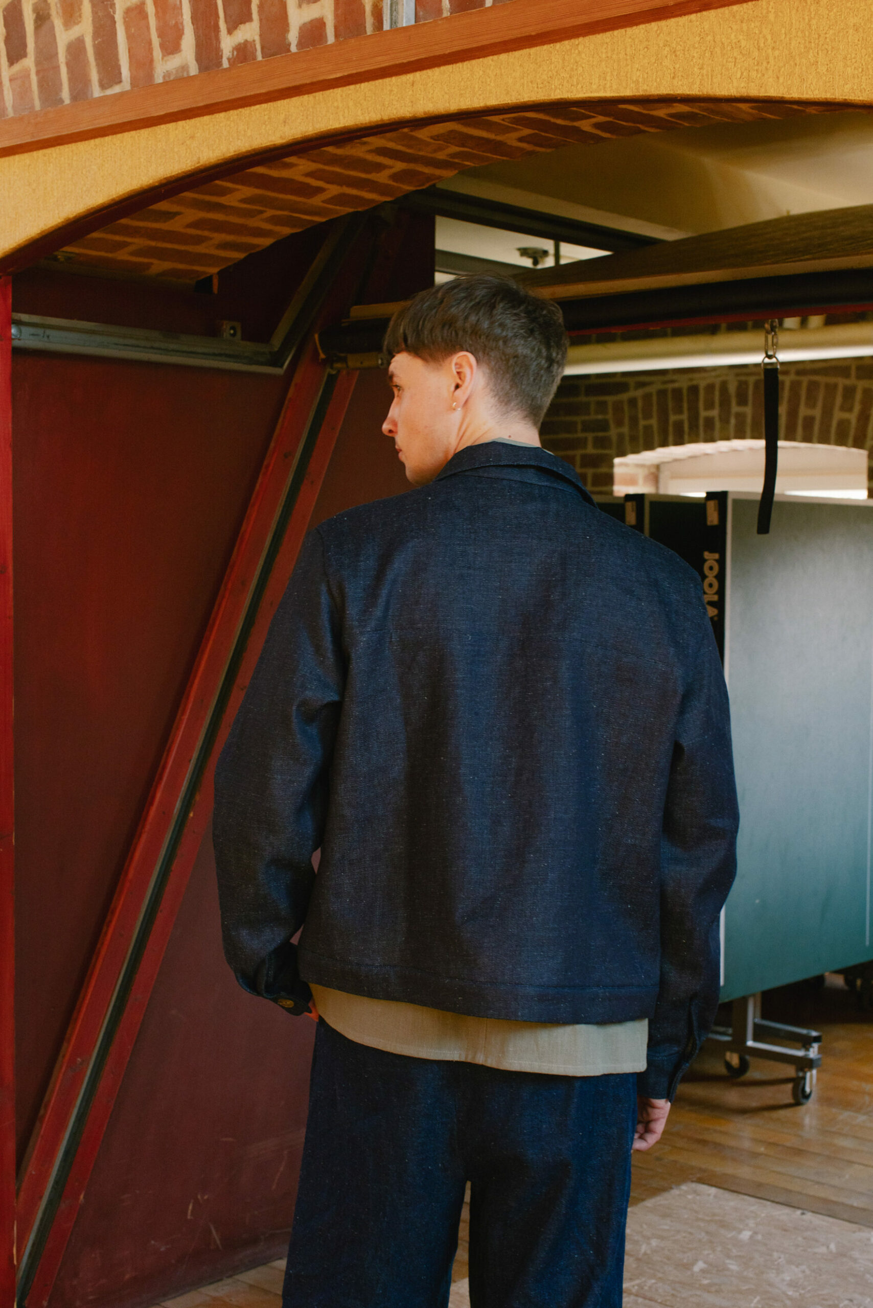 Diese verkürzte Unisex-Jacke aus Raw-Denim verfügt über zwei Brusttaschen und eine Knopfleiste. Mit der Zeit wird der Denim immer weicher und entwickelt einen natürlichen Used-Look. Der Hanfanteil sorgt für eine spannende Struktur. Wir empfehlen den All-Over-Look mit der Unisex-Bundfaltenhose Indigo.